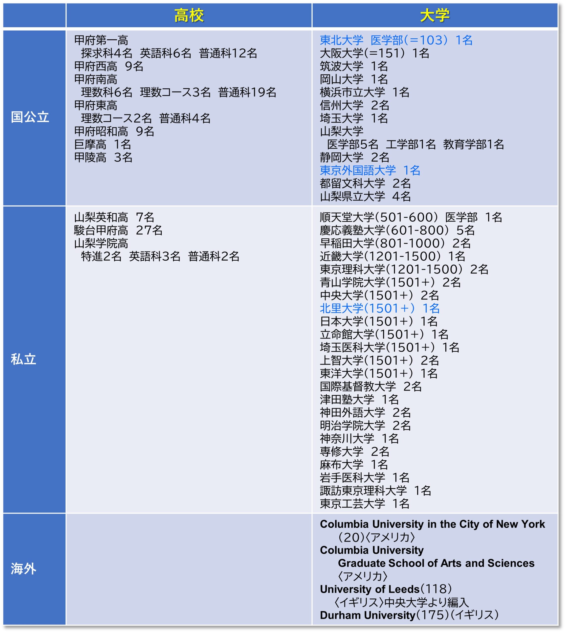 2011年以降、7名の中学生が山梨県代表として全国大会出場を果たしています。